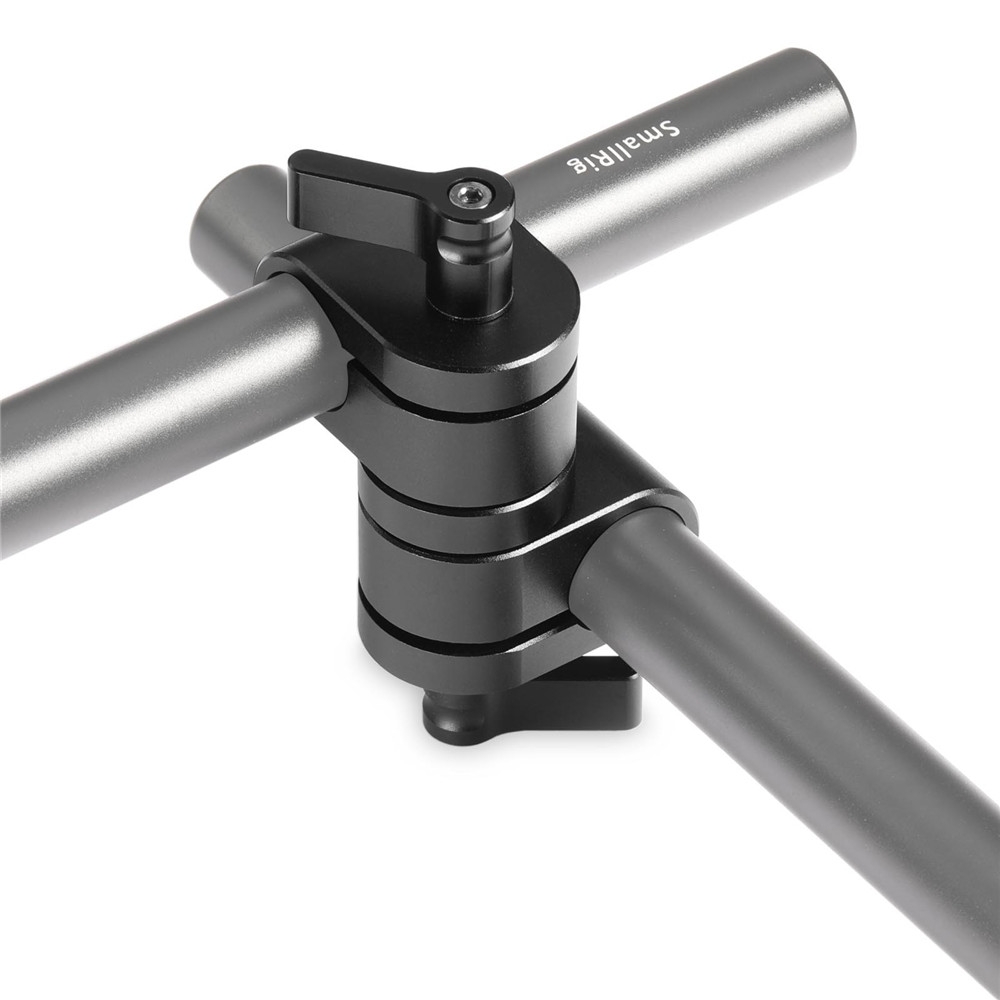 SMALLRIG 15mm Rod Clamp 1576 is a articulated part that mounts to 15mm rods.Controlled by a single quick release ratcheting lever, each 15mm rod clamp can be swivelled independently. Loosen the lever, you can attach a handle to a 15mm rod at eight angles: 45°, 90°, 135°, 180°, 225°, 270°, 315°, 360°.