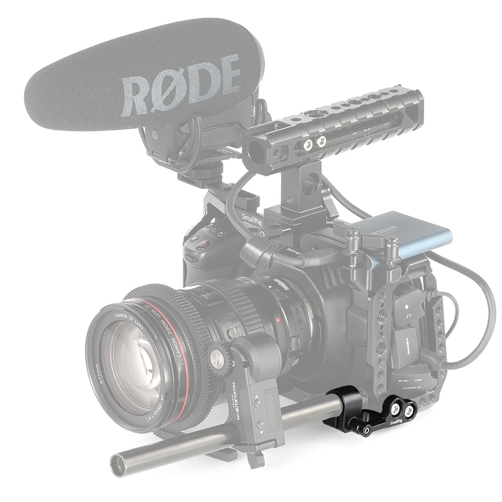 SmallRig 15mm Single Rod Clamp for BMPCC 4K / 6K Cage 2279 is a low-profile rod clamp. It is designed for BMPCC 4K / 6K to mount a follow focus motor. It works with SmallRig cage 2203, 2254 and 2255, attached to the bottom left corner of the cage by two 1/4 screws. By holding a 15mm rod firmly, follow focus motor like Tilta Nucleus Nano, PD MOVIE and REDROCK can be attached to your camera rig. The rod clamp does not interfere with SmallRig Cable Clamp 2246, HDMI cable or SmallRig Side NATO Handle 2187.