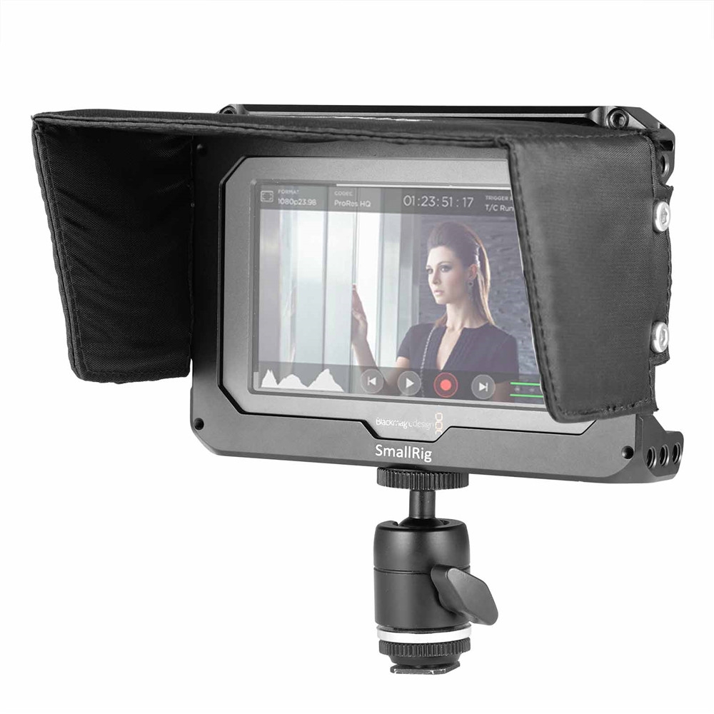 SMALLRIG 5"Monitor Cage Accessory Kit for Blackmagic Video Assist 1981 is a 5’’ monitor cage with sunhood. This is a great way to protect your Blackmagic Video Assist monitor. Made of CNC machined aluminum, the cage is quite lightweight and solid, and you will still have access to all the features of the monitor. It includes numerous 1/4”-20 & 3/8”-16 threaded holes for many attachment options. An integrated and anti-twisted NATO rail on top for attaching NATO standard accessories directly. The included HDMI clamp for protecting your camera HDMI port. Besides, adding a sunhood is perfect to prevent direct sunlight for a good visibility of the screen’s image. Additionally, we considerately offer a SmallRig monitor support ball head 1875 for easy mounting.