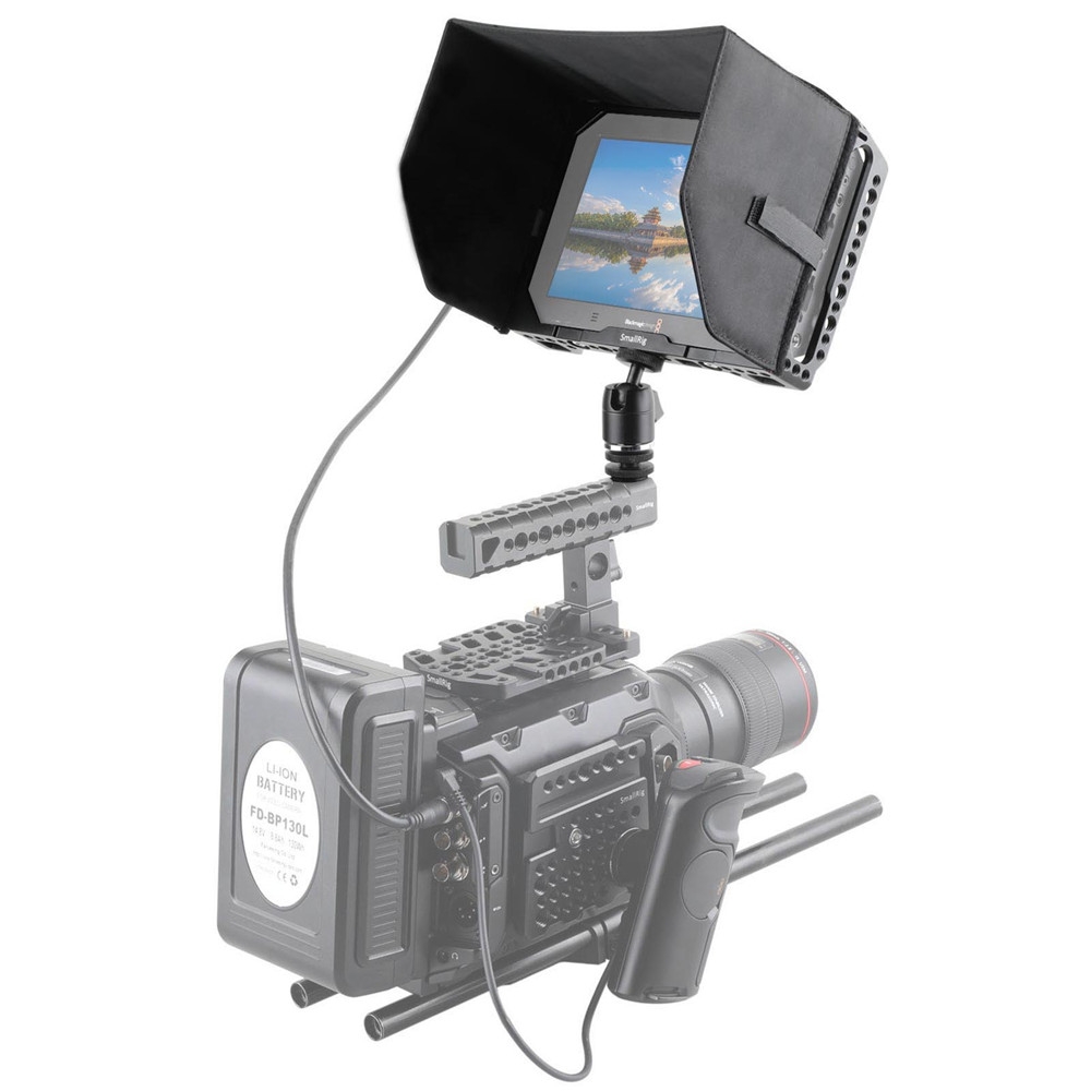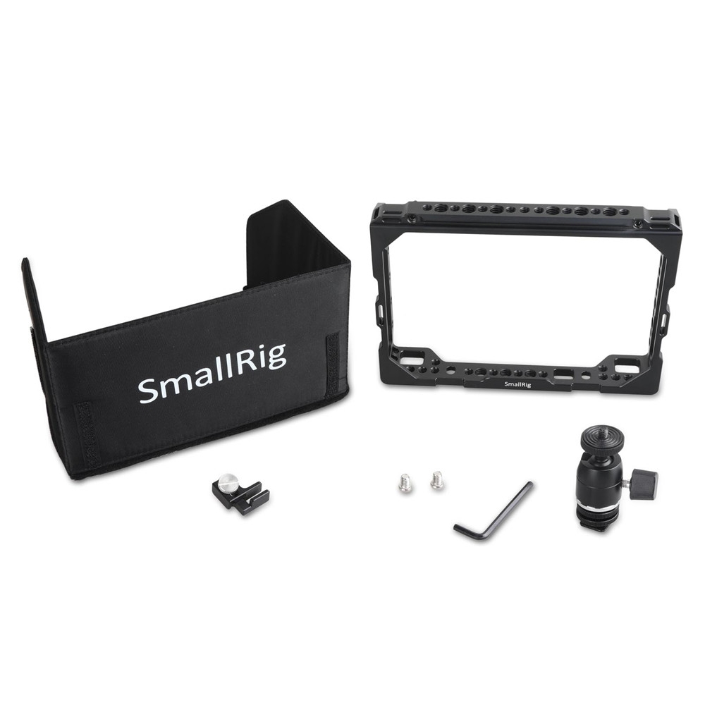 SMALLRIG 7" Monitor Cage with Sunhood for Blackmagic Video Assist 1988 provides you easy monitoring for Blackmagic Video Assist 4K Recorder. Fast and easy to install and made of CNC machined aluminum, this cage is lightweight and solid, and you will still have access to all the features of the monitor. This monitor cage includes numerous 1/4"-20 & 3/8"-16 threaded holes for many attachment options. There is an integrated and anti-twisted NATO rail on top for attaching NATO standard accessories directly. Additionally, we provide you HDMI clamp to protect the camera HDMI port. The sunhood is used to prevent reflexion from glare for a good visibility of the image on screen. This is also good for your eyes. Besides, we are humanized to provide you a SmallRig monitor support ball head 1875 for easy mounting.