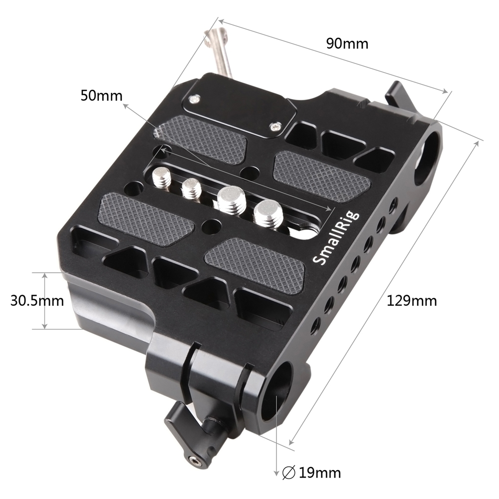 SMALLRIG ARRI Dovetail Clamp with 19mm Rod Clamp 1757 is standard ARRI dovetail clamp with 19mm rod clamp.It fits for ARRI standard dovetail perfectly.The 19mm rod system at the bottom help to attach various camera accessories.With the side lever, it is easy and convenient to lock and release the dovetail plate from ARRI standard plate.With the rubber pads, it can effectively prevent camera from scratched.The 55mm groove on the top have a wide range of compatibility.And there are many 1/4" holes for other accessories attachment.It is compact and functional.