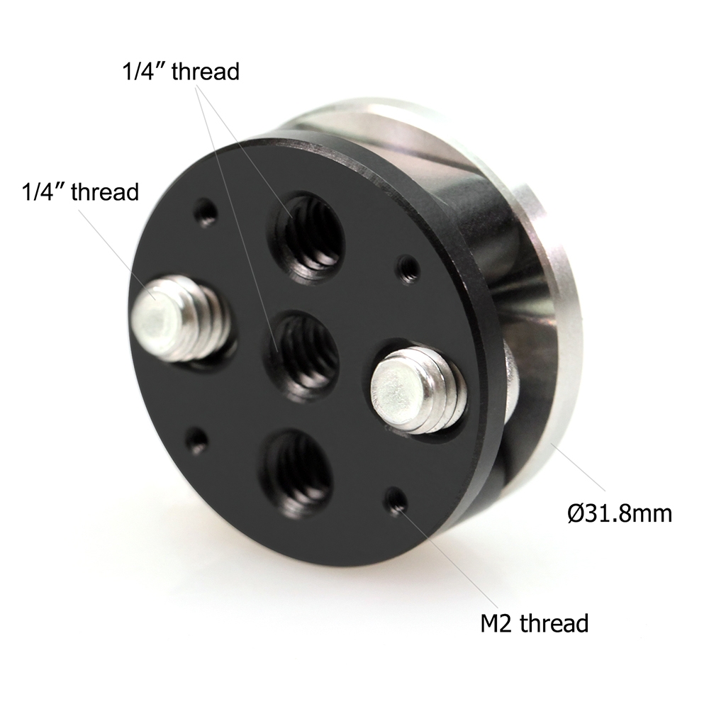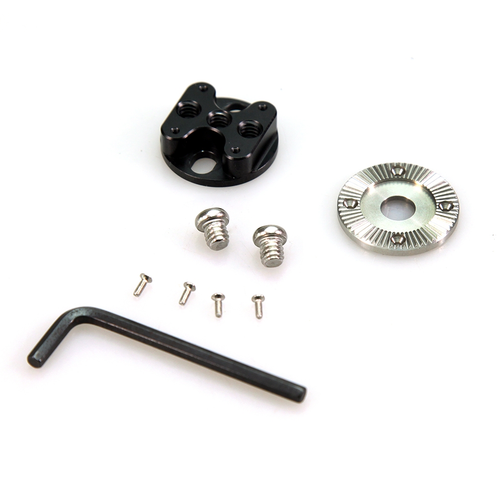 SMALLRIG ARRI Standard Rosette Bolt-On Mount (1/4’’) 1744 is a multi-functional Arri Rosette(1/4, 31.8mm diameter) Mount. There are three 1/4’’-20 and four M2 threaded holes on this rosette mount. It can be attached to cage, rosette handle and other accessories, like acting as connector between SmallHD side finder and ZACUTO AXIS mini. The stainless steel and aluminum alloy materials make the rosette mount more sturdy and lightweight.