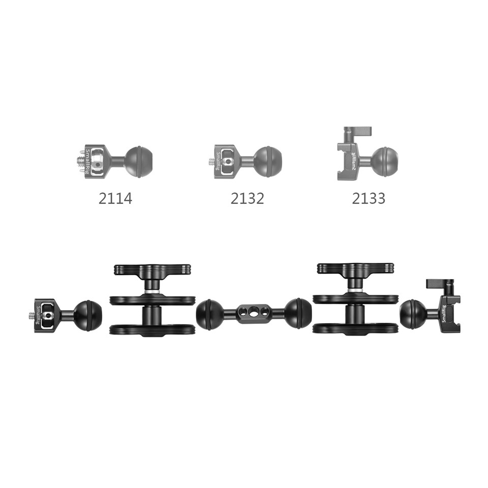 This ballhead with 1/4-20 screw is a component of SmallRig ballhead arms. Combined with Smallrig Ballhead Clamp 2134, it can work with other ballhead accessories like 2114, 2133, and 2108, to bring more custom configurations. It has a tool-less thumb screw for convenient installation, anti-slip pads and a cushion ring for firm grip.