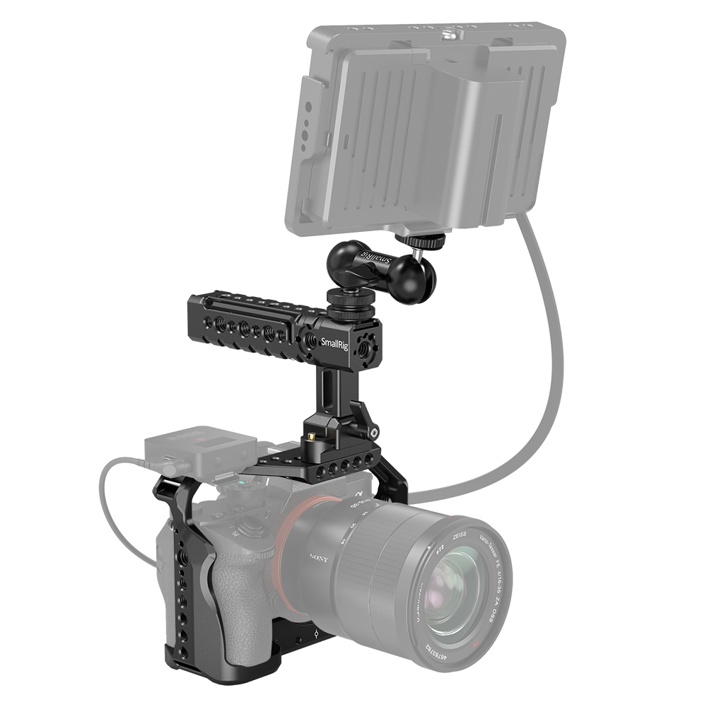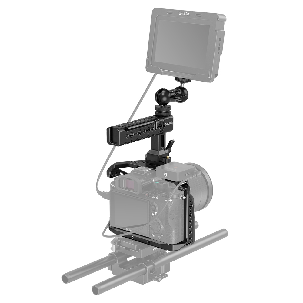 SmallRig Cage Kit for Sony Alpha 7 III / Alpha 7R III 2103C is exclusively designed for Sony A7RIII/A7III. It includes 4 parts, namely Double End Ball Head 1135, A7R III Cage 2087, Safety Rail 1409, and NATO Handle 1955. NATO Handle 1955 could be mounted on Safety Rail 1409 for handheld shooting. It is equipped with an abundance of threaded holes and cold shoes for additional attachment. It could be easily adjusted forwards and backward for the balance of the rigs. Double End Ball Head 1135 comes with a shoe adapter on one end and a 1/4"-20 screw on the other end. It enables to mount of a monitor, wireless video transmitter and microphone, etc. It provides multiple choices for the cameraman based on the needs. Cage 2087 is exclusively designed for Sony Alpha 7 III / Alpha 7R III. It does not block any access to the battery compartment, ports, and slots of the camera. It fits the camera perfectly and serves anti-twist purposes. Also, it comes with arrays of 1/4"-20 and 3/8"-16 threaded holes for DIY operations.