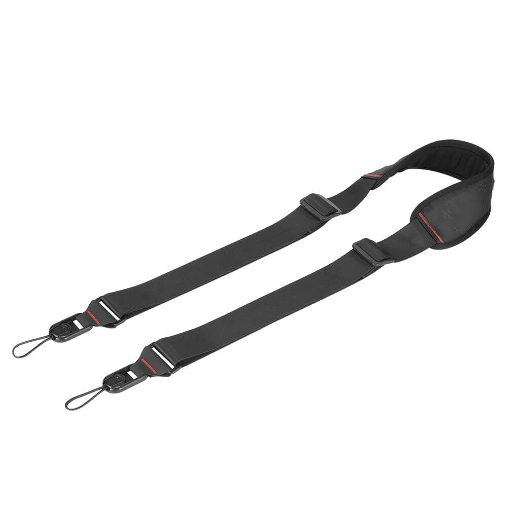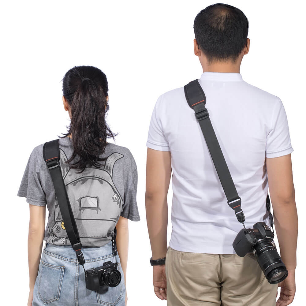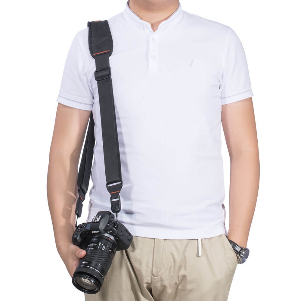 SmallRig Camera Shoulder Strap PSC2428 is designed for a better carrying solution of DSLRs. It can be worn as a sling, neck or shoulder strap. The strap features a dual-layer nylon webbing, and an ergonomical shoulder pad filled with memory foam which is thermo-compression formatted, helps relieve the pressures and pains on your shoulder and neck caused by longtime shooting and brings more comfortable carrying experience. The strap length is adjustable, the maximum length is 160cm and the minimum length is 110cm, to fit people with different sizes. Unique Rapid Link system allows quick attachment/detachment of the camera strap and provides your camera a safer carrying way. The strap comes with a QR plate which is compatible with both Arca-Swiss and Manfrotto® RC2 tripods. Four lanyard holes on the four corners can be used to attach Rapid Link Connectors for more ways of carrying a camera.