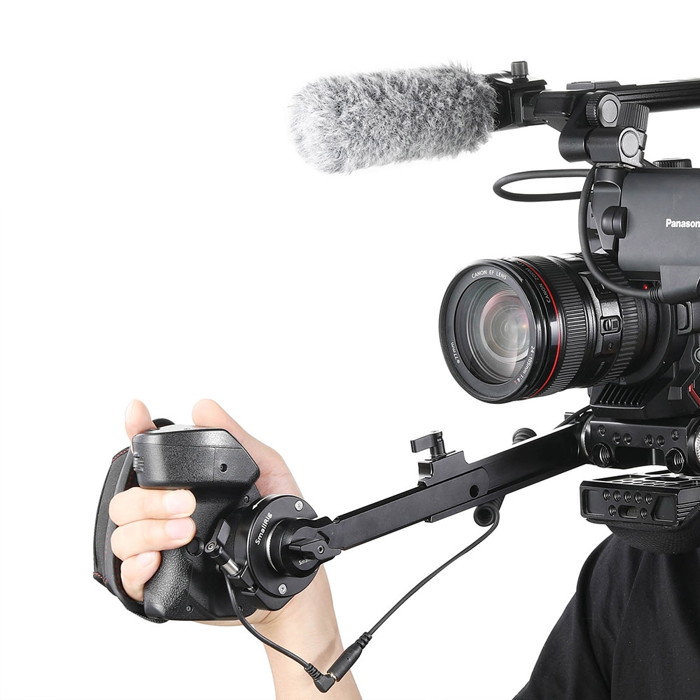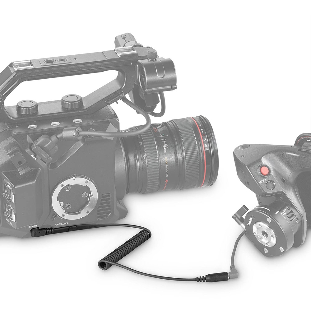 Smallrig Coiled Male to Female 2.5mm LANC Extension Cable 2201 features a right-angle 2.5mm jack and 2.5mm female plug. The cable allows the Panasonic EVA1, Sony FS5 handgrip and other handgrips with 2.5mm LANC port to be moved further away while retaining electronic control. It measures about 13"long from end to end and allows to extend up to 39" long. Optional Panasonic EVA1 Handgrip Adapter 2137 can be used with the cable together to relocate the handgrip of EVA1.