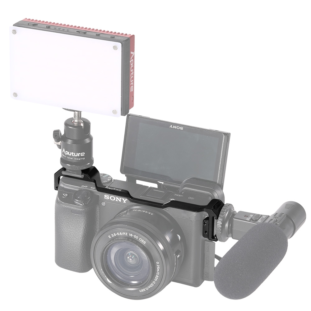 SmallRig Cold Shoe Relocation Mount for Sony A6100/A6300/A6400/A6500 BUC2334 is designed to relocate the camera original hot shoe to each side of camera for microphone and light with no obstruct the original hot shoe mount and the tilt screen on Sony A6400. The relocation mount secures firmly to the strap holes on each side via a m2.5 screw to prevent twisting and features m2.5 threaded holes for storing screws when not in use. Additionally, it integrates with slot on each side for carry strap and fits the camera perfectly so that you can put it on the camera all the time. The lightweight plate is designed to keep your setup simple so that you can hold it on the camera all the time.