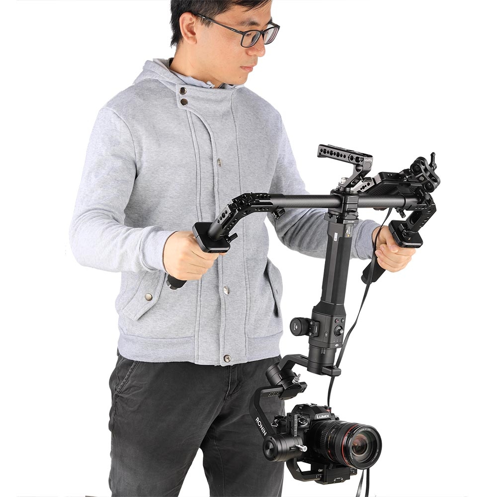 SmallRig Dual Handgrip for Handheld Gimbal DJI Ronin S/Zhiyun Crane Series 2210 is designed to operate your gimbal with both hands and provides mounting options for accessories. The modular designed handgrip attached to the gimbal via a quick release plate which is Ronin standard. The quick release plate comes with both 1/4"-20 and 3/8"-16 threaded holes to compatible with DJI RoninS and Zhiyun Crane Series Gimbal. The handle is able to take apart into several parts to make it easy to store. The corner of the handgrip comes with multiple 1/4-20", 3/8"-16, arri locating holes and nato rail for accessory attachment. The 25mm handlebar also allows to attach Smallrig 25mm Mounting Rod Clamp 1860 and 2043 for accessory attachment. Optional 25mm feet 1914 allows to put your gimbal on the ground. Additionally, the bottom connection part features multiple 1/4-20", 3/8"-16 threaded holes allows for mounting a top handle for run and gun shooting and converting a tripod plate to put your gimbal on a tripod. The handgrip also includes two hand stoppers to avoid hand slippage.