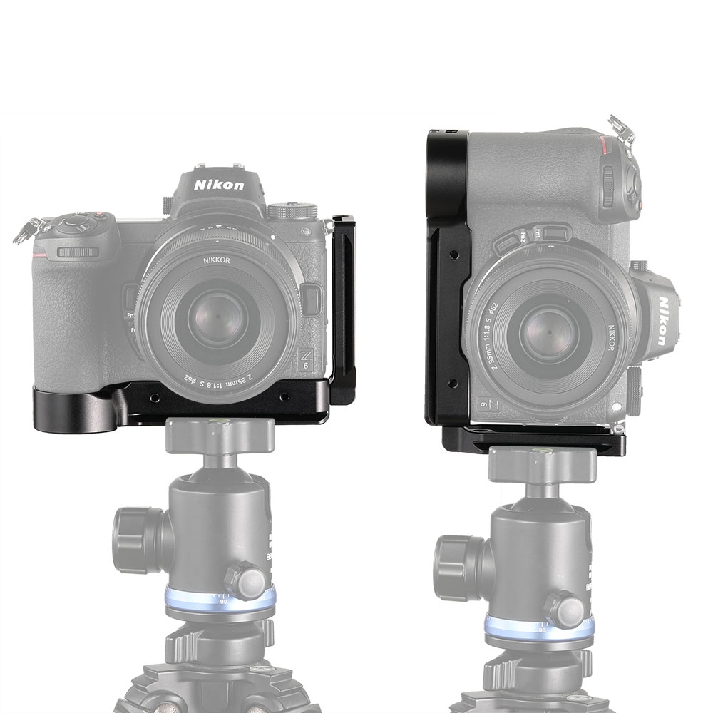 SmallRig L-Bracket for Nikon Z5/Z6/Z7/Z6 II/Z7 II Camera APL2258 is a modular design with anti-twist flanges to keep the camera from twisting. The bottom plate adds 16.5mm height based on the original handgrip for pinky support. Both the base plate and side plate are Arca-type compatible dovetail plates enable the camera to mount in a vertical or horizontal position. It features a sensor centering line on each axis to align the camera on a tripod head and maintains complete access to the camera's battery and ports. The side plate can be extended to left if more room is needed for tethering or cable release. An included hex wrench on the bottom is used to tighten and adjust the L-bracket. Additionally, it is compatible with the Peak Design strap and include a hand strap loop on the right side. Furthermore, 1/4"-20 mounting holes are located on the side and bottom for accessory attachment, such as Cold Shoe Mount 1593. The front of the baseplate comes with two M4 screws for FTZ Adapter Mount 2244 to protect the lens port.