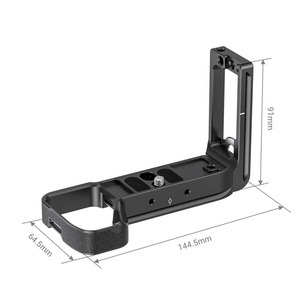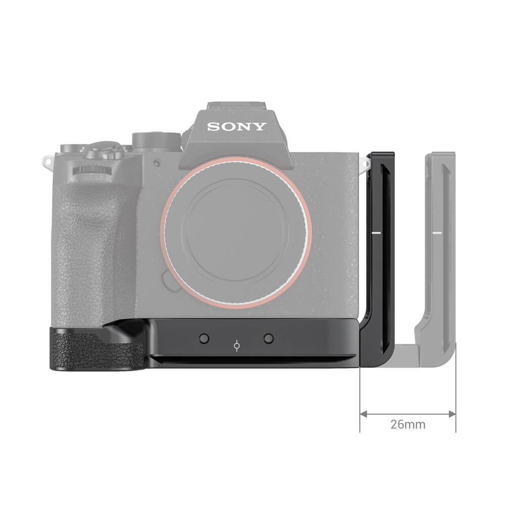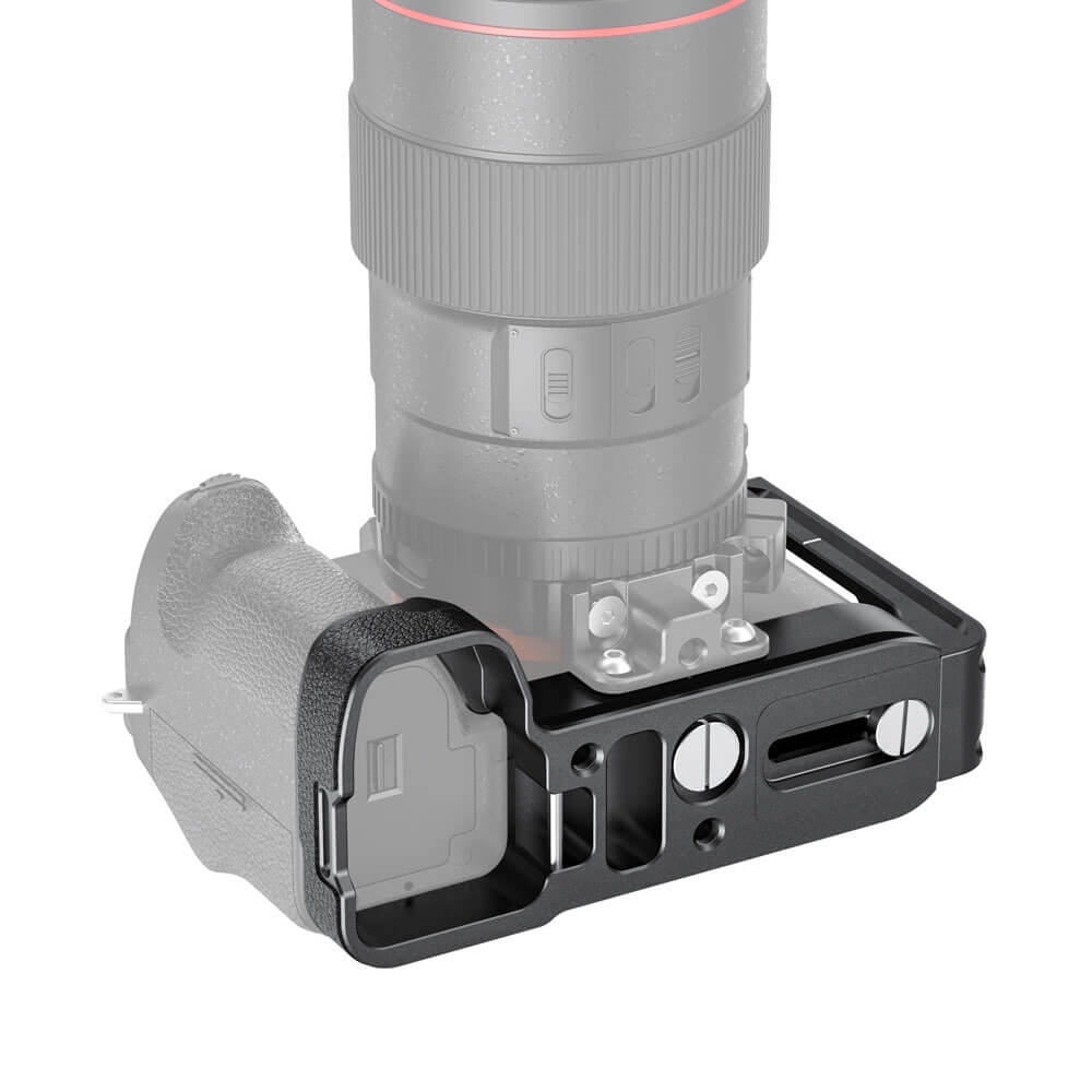 SmallRig L-Bracket for Sony Alpha 7R IV & Alpha 9 II LCS2417B is specially designed for quick switch between vertical and horizontal shooting and for better grip experience. It locks the camera via a 1/4"-20 screw on the bottom and features rubber pads on the baseplate to prevent scratching and twisting. Both the base plate and side plate are of Arca-Swiss standards with center marks. The side plate can be extended to the left if more room is needed for tethering or cable release. The battery compartment door uses a rotating shaft structure design so that the battery can be quick replaced by rotating and opening the battery door. Featuring multiple 1/4"-20 threaded holes on the side for accessory attachment like Cold Shoe Mount BUC2736 and Cable Clamp 2259. The grip features leather pads to support pinky and improve grip comfort. Besides, the L plate provides slots for the carry strap and comes with a flat-head screwdriver to secure the camera screw and stores it on the bottom of the L bracket.