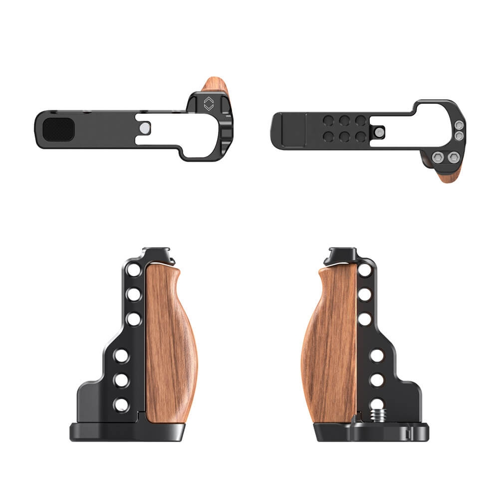 SmallRig L-Shaped Wooden Grip with Cold Shoe for Sony RX100 III/IV/V(VA)/VI/VII LCS2438 is designed to provide comfort grip and accessory mounts for RX100 series users. The grip secures to the bottom of camera via a 1/4 screw and features anti-twist flanges to prevent twisting. It features two cold shoe, one on the top and the other on the bottom so that you can attach light and microphone at the same time which makes vlogger’s work much easier. Multiple 1/4"-20 accessory threads on the side and bottom allows to mount magic arm, tripod or tripod plate without obstructing the battery door. Featuring a wooden handgrip and increase the space between grip and lens to ensure comfortable when holding.