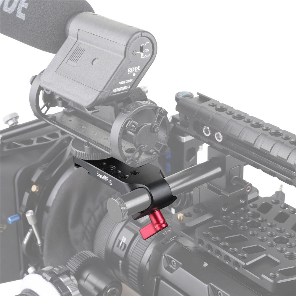 SMALLRIG Mini Mounting Plate with Single 15mm Rod Clamp 1906 is a simple plate with various functions, used with any industry standard 15mm rod. It includes two cold shoes on the plate, which allows to attach microphone, wireless receiver or articulating arm. Besides, it comes with an adjustable groove to keep the kit balanced when using monitor or EVF. Body of the plate is equipped with several 1/4" & 3/8" mounting points for additional accessories attachment.