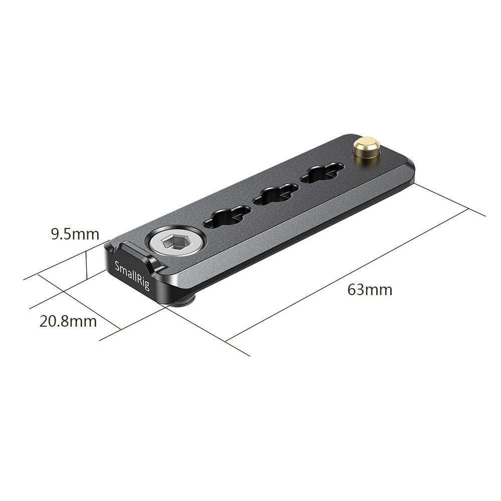 SmallRig Mini Safety NATO Rail for Mobile Phone Cage BUN2395 is designed to work with SmallRig Standard Mobile Phone Cage CPU2391 and can be fixed to the cage by just one 1/4”-20 screw without any unwanted rotations. It’s compatible with SmallRig NATO clamps for quick release like attaching the SmallRig NATO Cheese Handle when you need a low-mode shooting, or mounting a SmallRig NATO Clamp with Magic Arm 2028 to use your phone as a monitor. It features a safety pin and a convex plate to prevent sliding off. Multiple 1/4”-20 thread holes on the NATO rail help attaching other accessories. Its low-profile design makes it less bulky when attached to the mobile phone cage.