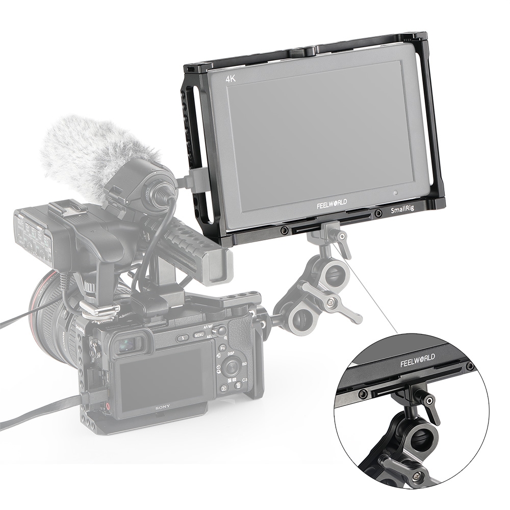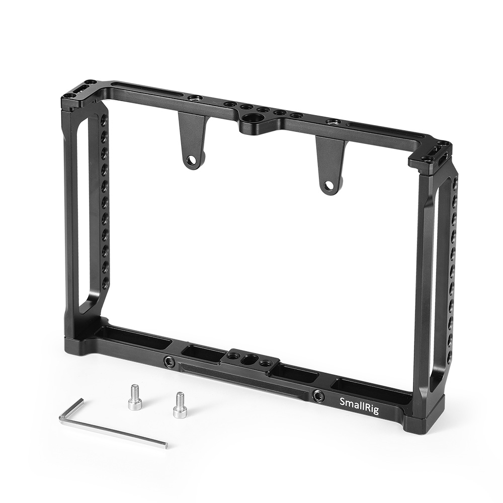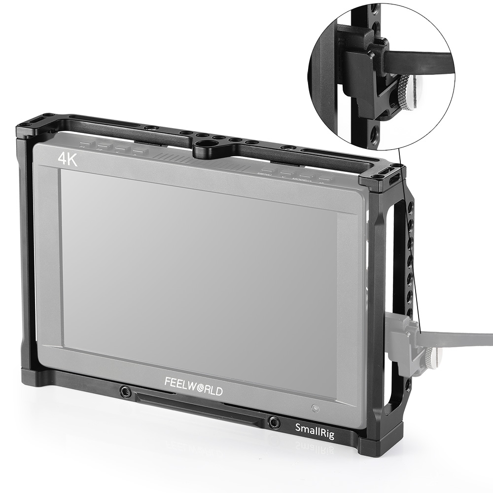 SmallRig Monitor Cage 2233 is specially designed for Feelworld T7, 703, 703S , MA7, MA7S and F7S Monitor to provide an all-around protection and mounting options. Monitor can be firmly fixed on the aluminum cage via multiple lock points on the top, bottom and back, which prevents twisting. The cage provides multiple 1/4"-20 holes on the top and bottom for attaching magic arm and EVF mount, such as 2070 and 2113. Besides, the monitor cage can attach side handles 2093 on both sides via 1/4"-20 holes for a comfortable handle support. It features a nato rail on the bottom for accessories with nato clamp to make your setup quick release, such as nato clamp 2205. Additionally, strap holes on the top are designed to attach neck strap for providing convenience to carry.