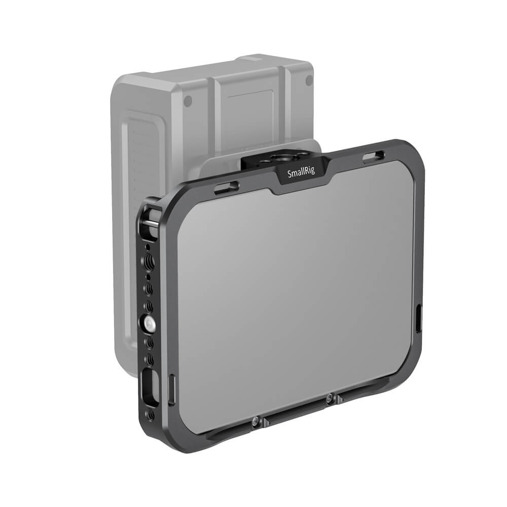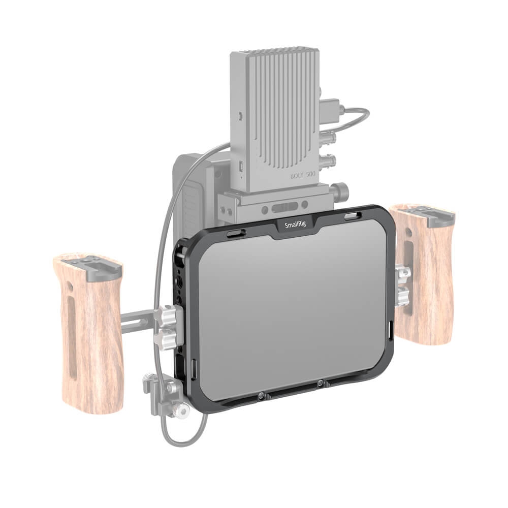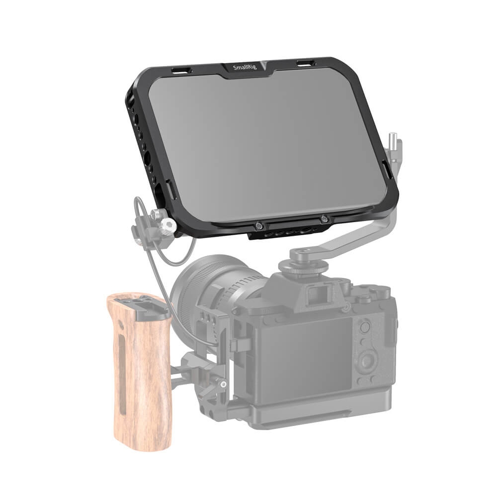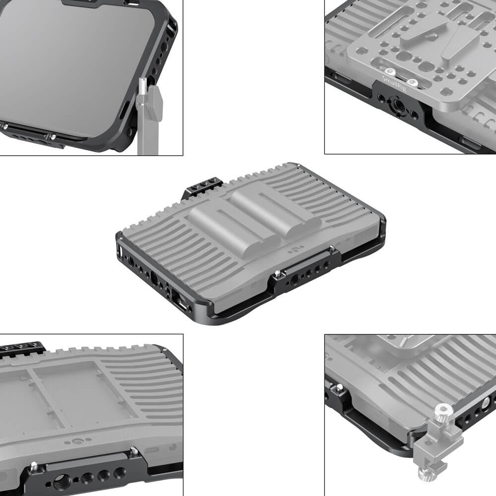 SmallRig Monitor Cage with Sun Hood for SmallHD FOCUS 7 CMS2470 is designed to provide all-around protection and accessory mounts for monitor. The cage secures to the monitor via a 1/4”-20 screw on each side to prevent twisting. Multiple 1/4’’-20 and Arri 3/8’’-16 threads are provided for accessory attachment such as Magic Arm 2070 and 2115. The bottom features a NATO rail for NATO clamp compatible accessories to quick release your setup, such as Magic Arm 2071 and Monitor Mount 2256. There are three 1/4”-20 threads on the back allows for attaching Battery Plate 1846 or Wireless Receiver Plate 2107. Dedicated sun hood are included to provide glare protection when shooting outdoor. Optional HDMI/SDI Cable Clamp BSC2333 can be used to secure the cable. The right side features a 1/4”–20 threaded hole with two locating holes allows for mounting the original SmallHD tilt arm for angle adjusting.