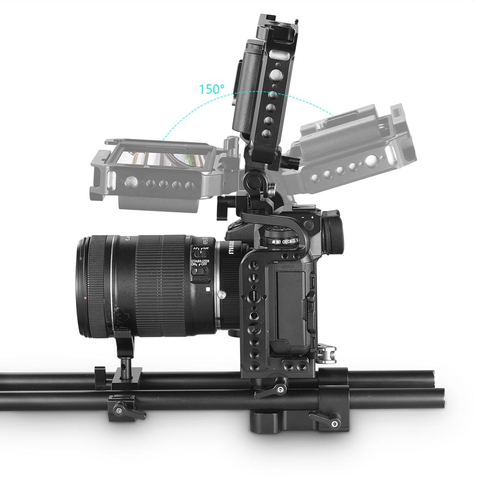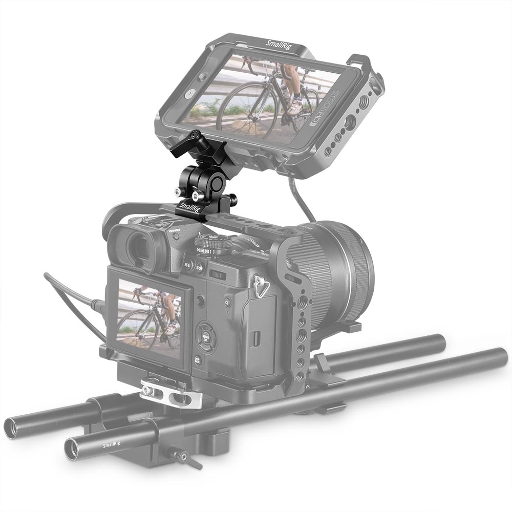 SmallRig Monitor Mount with Nato Clamp 2205 is designed to hold your monitor onto a camera cage via the Nato clamp,it allows to mount any monitor cage with nato rail at the bottom to any camera cage with nato rail on the top. The quick release monitor mount enables to adjust the position of monitor up to 150° without using tools. The lightweight mount is able to support monitor up to 1.5kg.