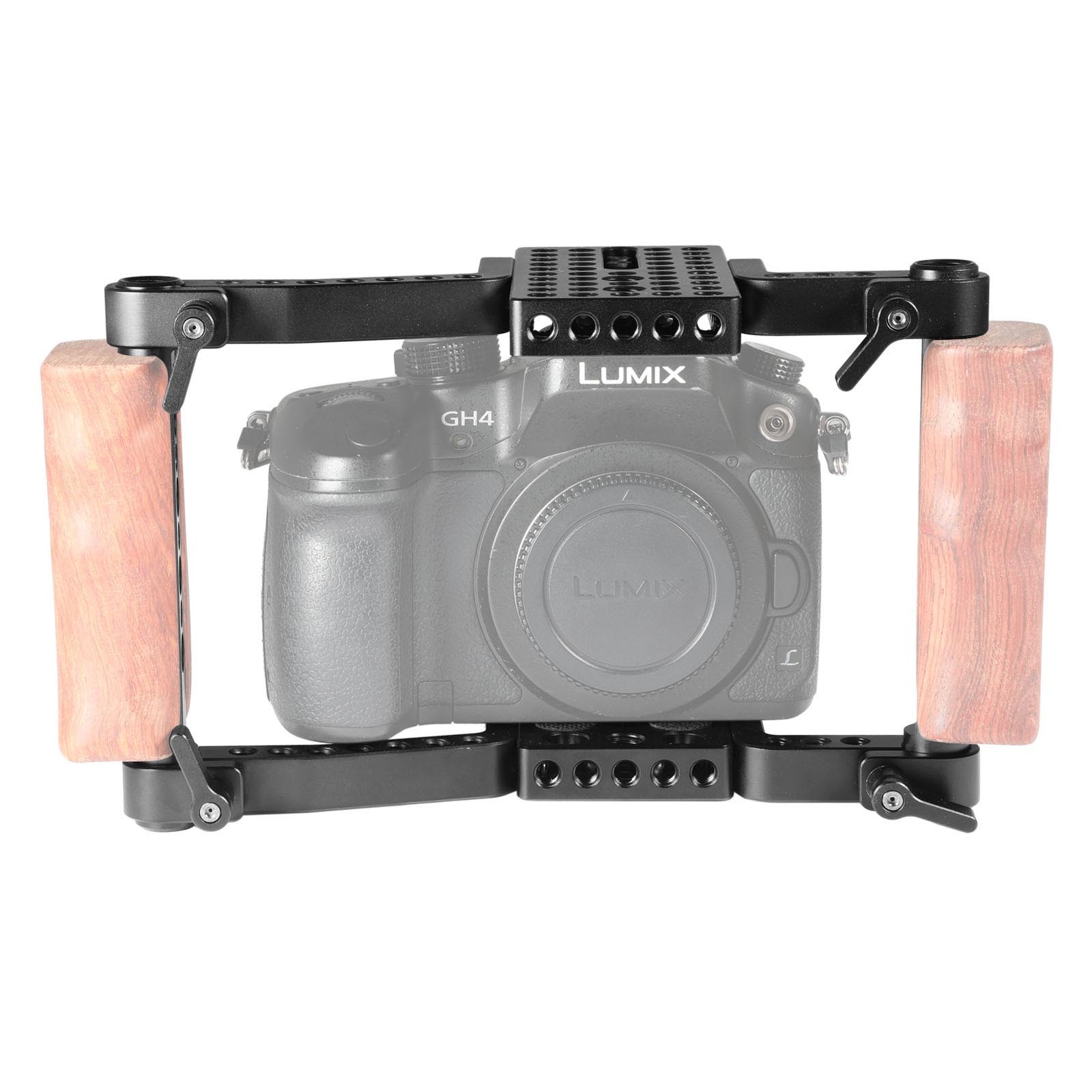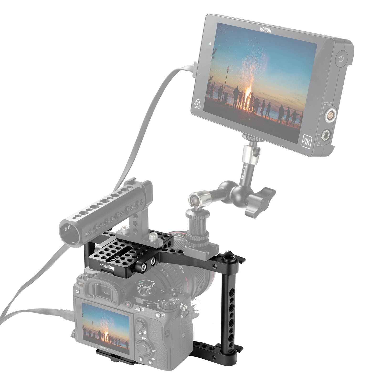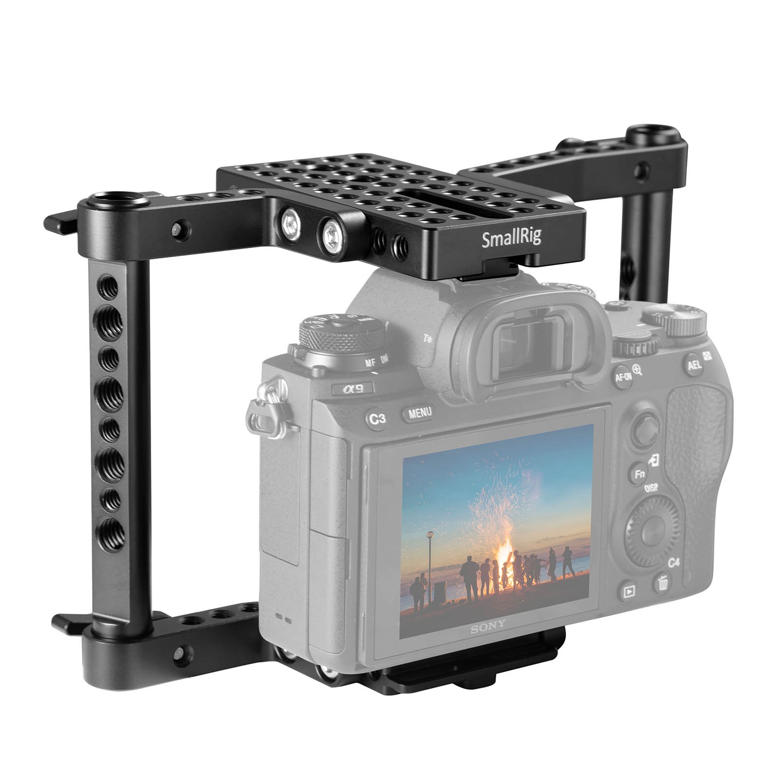 The rods on both sides let you go handheld right away.Both rods can be adjusted in height and position around the camera, and one side can even be completely removed if not needed.All camera connections, buttons, dials and the battery door remain fully accessible. Our custom hotshoe pinch connects your camera into one solid piece with the cage. Plenty of 1/4"-20 mounting threads allow for assembly of a full rig to your needs. This cage is very lightweight.